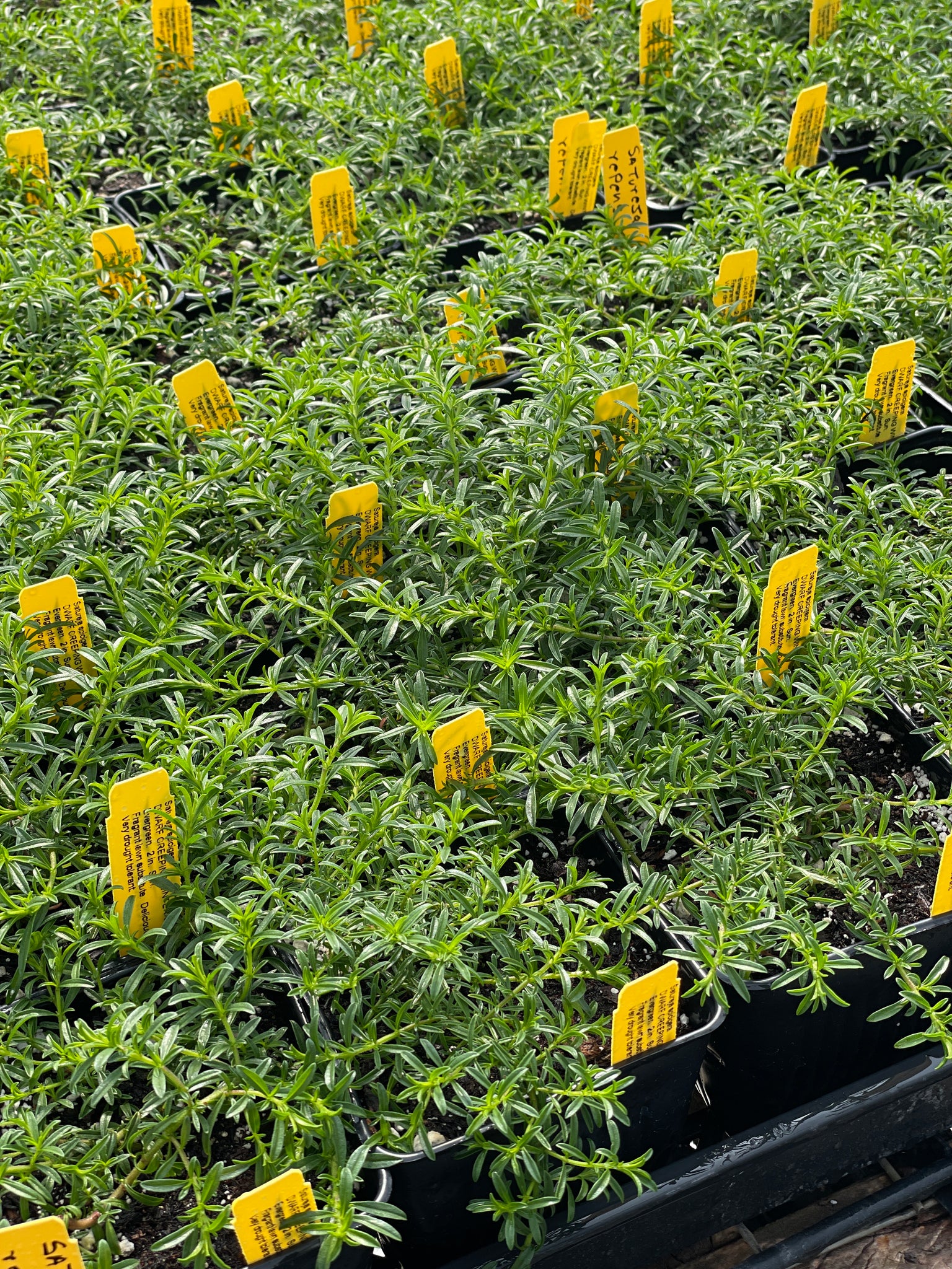 Fragrant lawn substitute that is very drought tolerant. Dwarf Winter Savory is a very low growing, small leaved, trailing perennial herb. Spring blooms cover the ends of the branches in white. Grows well as a trailing plant, spilling out of pots or over rocks or walls. Delicious culinary for meats, breads, stew, etc. Prune back to new growth in late winter, early spring.